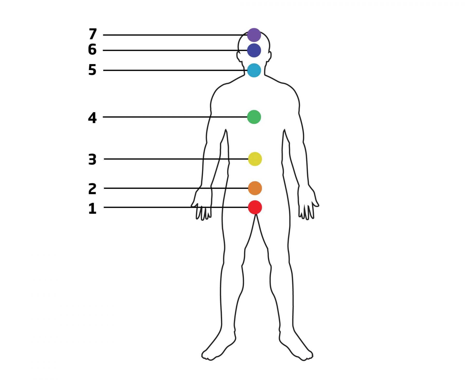 Чакры располагаются четко посередине тела, вдоль центральной вертикальной оси: