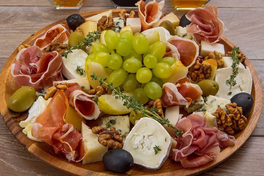 Смело подавайте всевозможные салаты. Отлично подойдут: буженина, окорок, сырокопченые колбасы и т. д. И конечно же, фрукты, десерты и сладости.