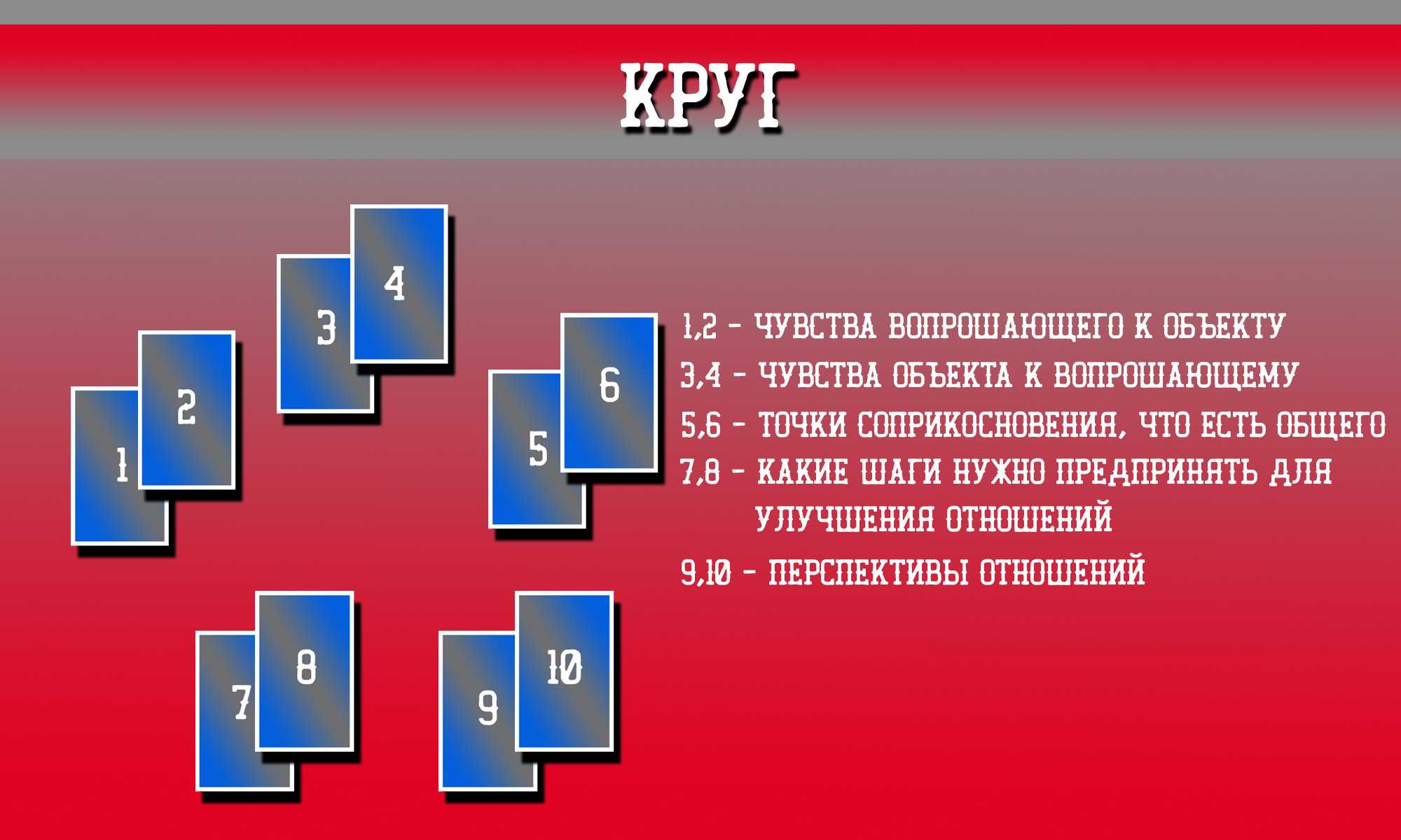 Каждый человек желает взаимности в любви. К сожалению, прочитать мысли объекта воздыхания невозможно, поэтому нередко попытки завоевания откладываются на неопределенный срок или вовсе не предпринимаются из-за страха быть отвергнутым. Таролог может подсказать вопрошающему, применив расклад «Круг». Это довольно простая комбинация, позволяющая ответить на самые важные вопросы, а именно: