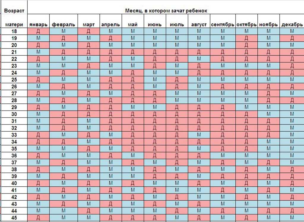 - Определите месяцы, в которых наиболее вероятным является зачатие малыша желаемого пола.