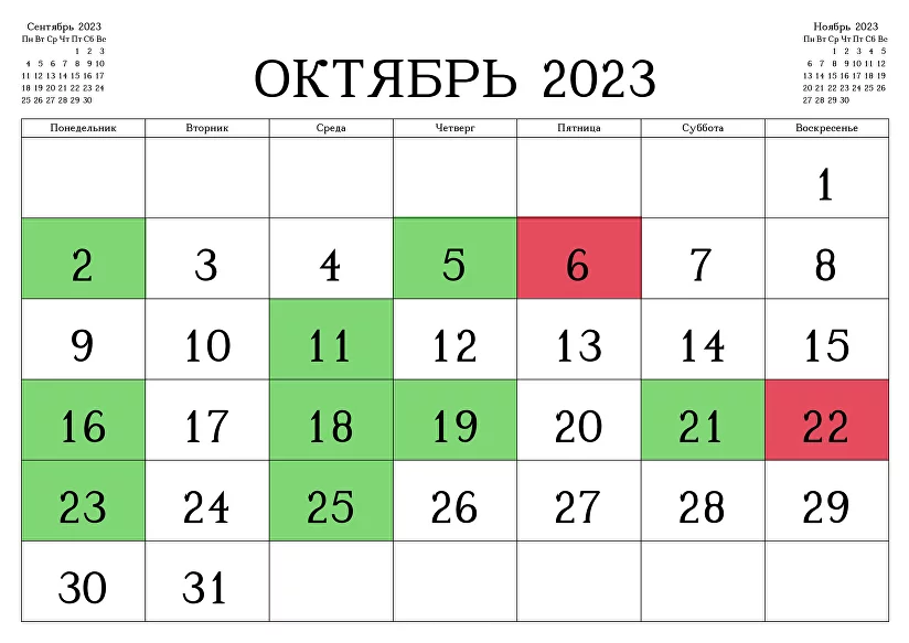 30 октября 2023 года, понедельник ( неблагоприятный)
