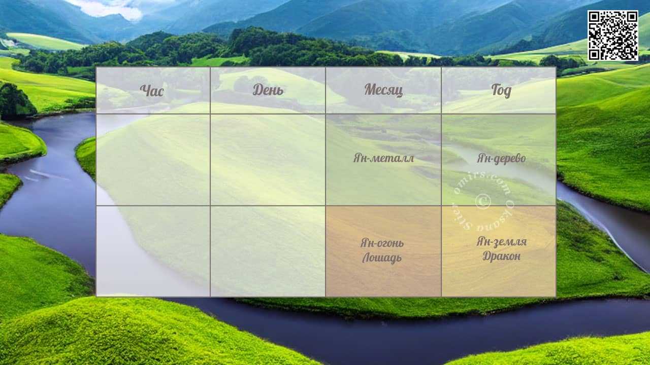 - Найденная цифра и будет порядковым номером данного года в шестидесятилетнем цикле, остается только найти ее место в таблице 6 и выписать из нее циклические знаки: сначала — стоящий над вертикальной и затем — стоящий перед гори-зонтальной колонкой, на пересечении которых ока-залась вычисленная цифра.
