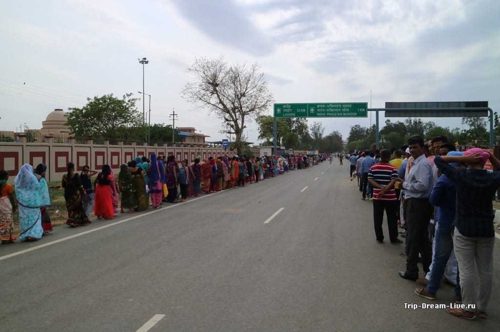 Приезжать на шоу закрытия индо-пакистанской границы следует сильно заранее, так как только в очереди на досмотр придётся простоять минимум час.