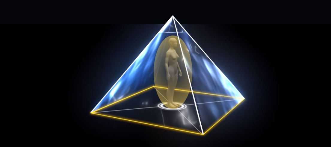 Визуализируйте над собой прозрачную пирамиду. Она крутится по часовой стрелке и опускается на вас в коконе. Вы в сияющем золотом коконе оказываетесь внутри прозрачной пирамиды. Посмотрите: что-то пытается дотянуться до вас, выпуская щупальца. Но это упирается в грань пирамиды и соскальзывает.
