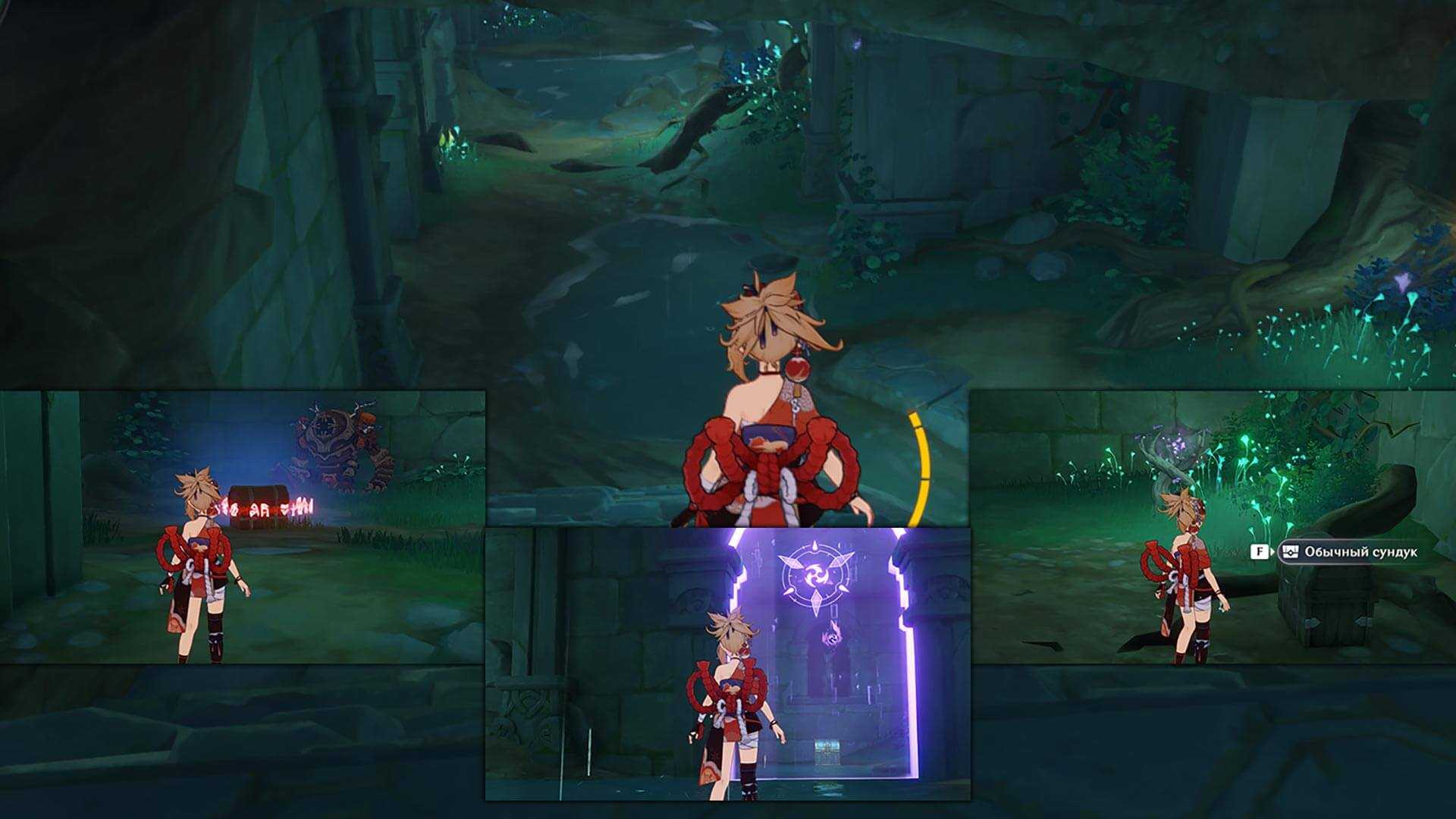 Здесь необходимо активировать четыре статуи. После их активации появится сундук, в котором вы найдете второй фрагмент.