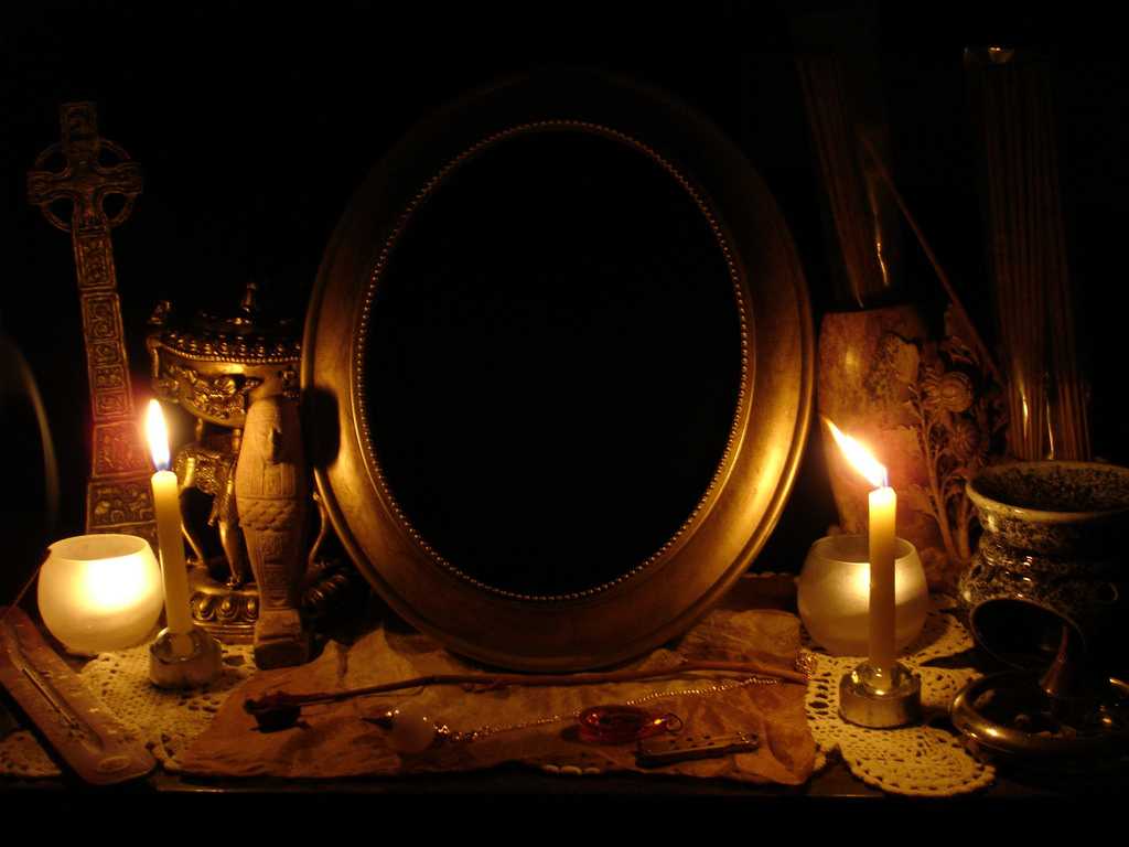 В этом случае нужно провести ритуал с красной церковной свечой, тремя седыми волосами и зеркалом и дождаться полнолуния. В подходящий вечер зажгите свечу, которую поставьте на стол в центре комнаты. Если ритуал проводится днем, выберите самую темную комнату. Расположите зеркало по диагонали позади себя, лицом к столу. Завяжите волосы в узел и сожгите их в пламени, произнеся три раза: