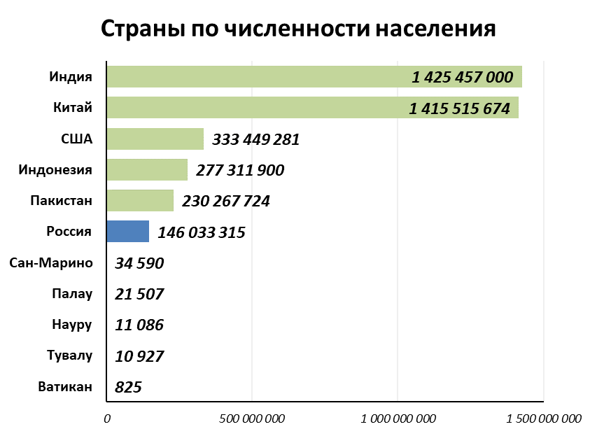 Начнем с простой статистики – где в мире живет больше всего людей, а где – меньше всего: