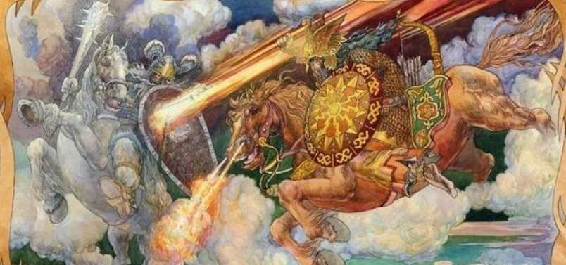 Силы оказались равными, накалились мечи, копья разлетались на щепки. Долго бились божества, пока Девана не решила перехитрить отца и превратилась во львицу, но Громовержец был искусным магом и вмиг обратился во льва. Девица запаниковала, от испуга превратилась в птичку и взлетела высоко в небеса, но Перун и здесь настиг ее: в обличие орла он ударил птицу, и она упала в море.