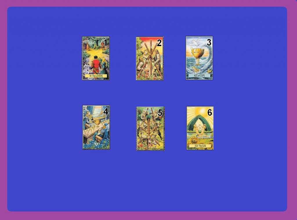 Гадание выполняется следующим образом. Колоду нужно хорошо перетасовать и разложить на три стопки. С каждой необходимо вытянуть две карты: одну снизу, другую — сверху. Так, получится 6 позиций.