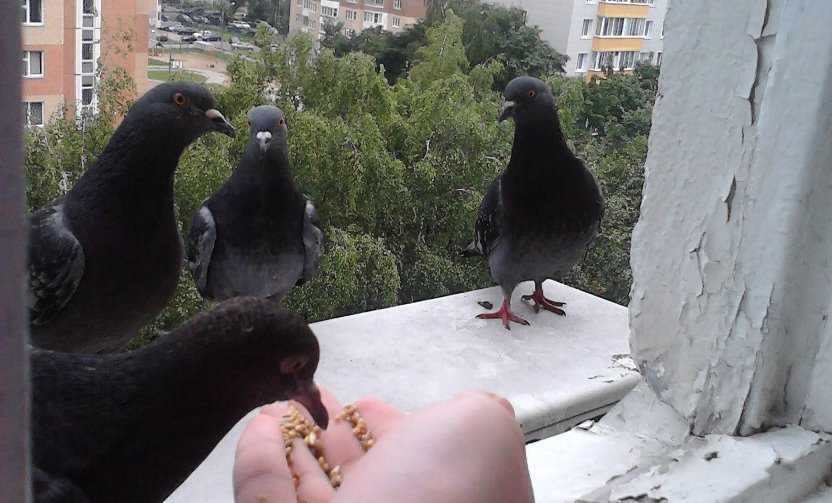 Когда птица прилетела на балкон, можно предложить ей угощение