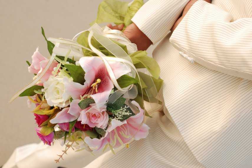 - Уронила – счастье упустила. Принимая цветы от жениха, невеста должна бережно держать их в своих руках. Считается плохим знаком, если они случайно выпадут из рук, ведь они ассоциируется со счастьем и благополучием пары. Роняя их, невеста словно упускает семейное счастье;