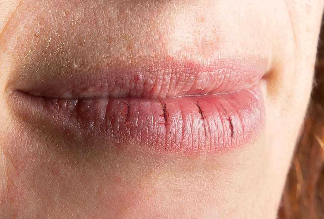 Губы могут потрескаться и зудеть от обветривания и сухого воздуха