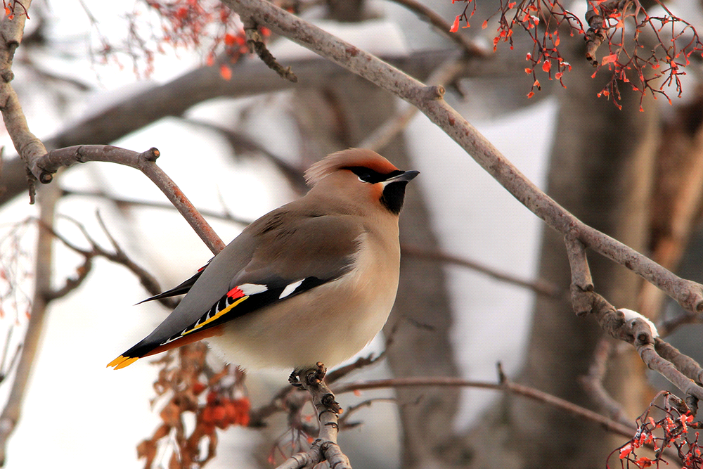Что за птица свиристель? Начинать знакомство с ярким представителем отряда воробьиных лучше зимой, когда на фоне снега и алых гроздьев рябины мелькают красиво окрашенные юркие птички с хорошо заметным хохолком.