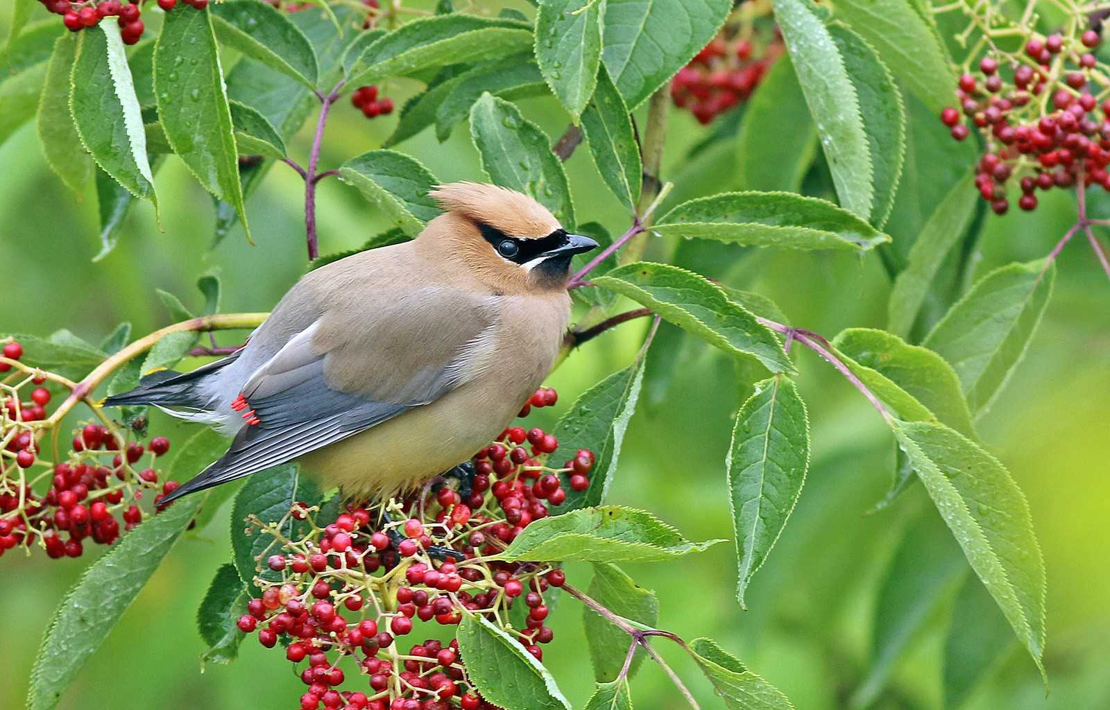 Песчано-коричневые птицы размером со скворца обладают поразительной черной маской и подбородком, а также красивыми восковыми отметинами на крыльях. Они приезжают сюда каждую зиму, но в разном количестве.