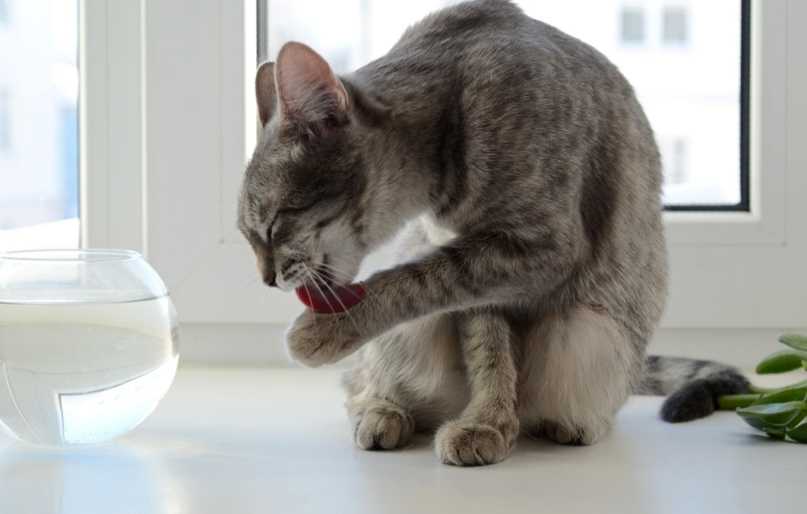 Питомец усердно моется, особенное внимание уделяет лапкам – предстоят солнечные дни.