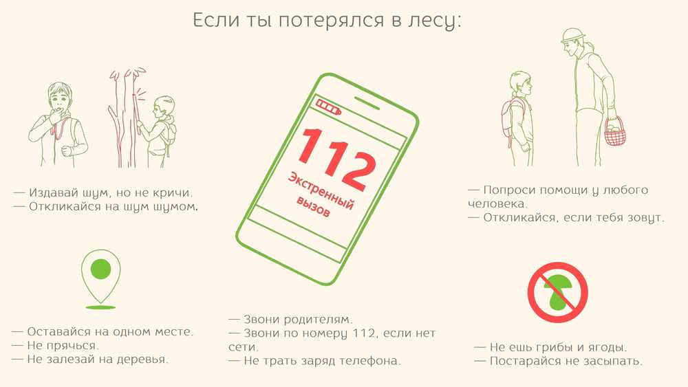 Если члены семьи или друзья не вернулись из леса в оговоренное время и не выходят на связь, звоните в МЧС (112, 01) или в ПСО “Лиза Алерт” (+7 800 700-54-52). Не отправляйтесь на поиски сами. Профессионалы знают, как найти заблудившегося в лесу, а если вы тоже там заплутаете, да еще и ночью, это никому не поможет. Вспомните как можно больше деталей: во что человек был одет, что взял с собой, расскажите об этом спасателям. Ждите, будьте на телефоне, вдруг ваш родственник выйдет на связь.