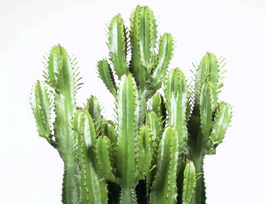 Молочай блестящий — красивый, распространенный колючий кустик, имеющий мясистый плотный стебель и маленькие зеленые листочки.