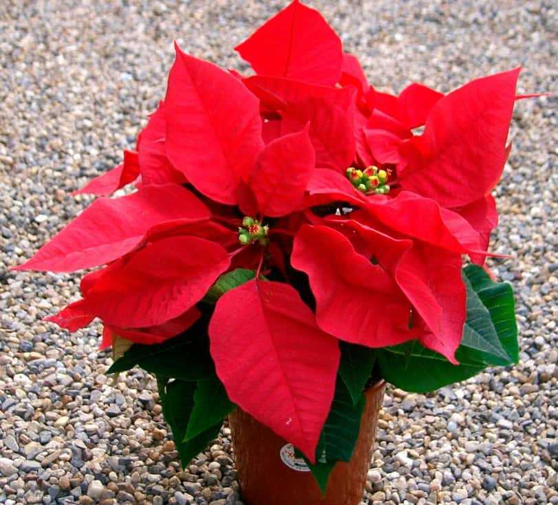 Пуансеттия (молочай красивейший) — свое название это красивое растение получило по праву. Стебли у него крепкие, сильно ветвятся, продолговатые листья обладают яркой окраской