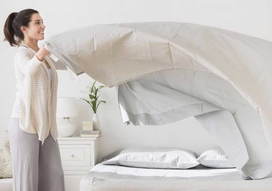 Застилать кровать чистым бельем рекомендуется в последний день недели, чтобы новая начиналась с хорошего крепкого сна. Перед тем, как постелить комплект, лучше прогладить ткань горячим утюгом. Дополнительно рекомендуется проветрить спальню, что избавляет от лишних микробов и бактерий в помещении.