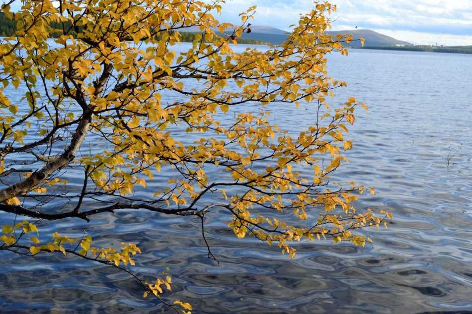 Жёлтый клён глядится в озеро,