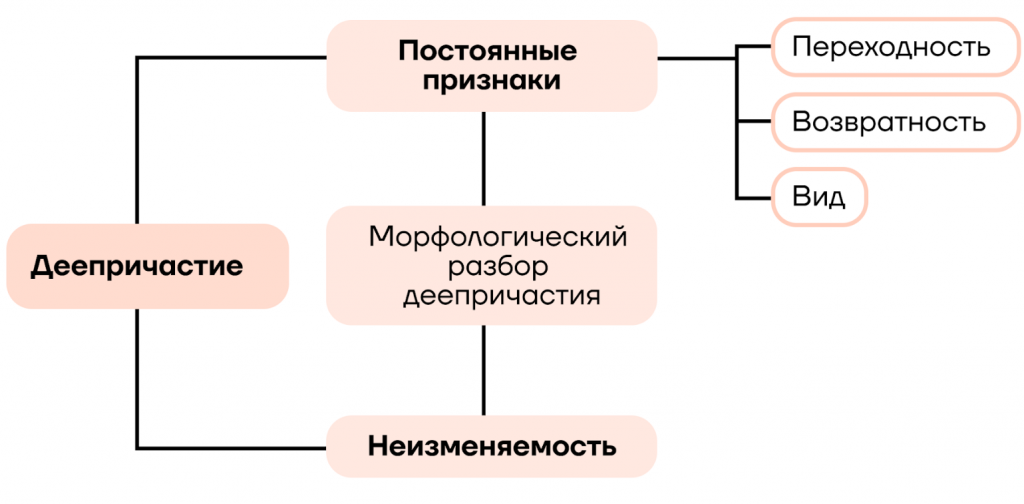 От наречия деепричастию досталось главное — неизменяемость, то есть непостоянных признаков деепричастие не имеет.