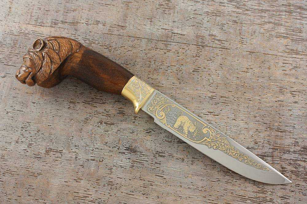 Тут стоит отталкиваться от предпочтений человека. Если это собиратель ножей, то лучше всего предложить интересный, уникальный экземпляр, который станет яркой искоркой в коллекции. Например, взгляните на вот этот подарочный нож « ». Мастера Златоустовской оружейной компании выковали его из качественной, очень прочной и гибкой нержавеющей стали . Рукоять ножа сделана из ореха в виде головы медведя. Выглядит невероятно стильно и мужественно.