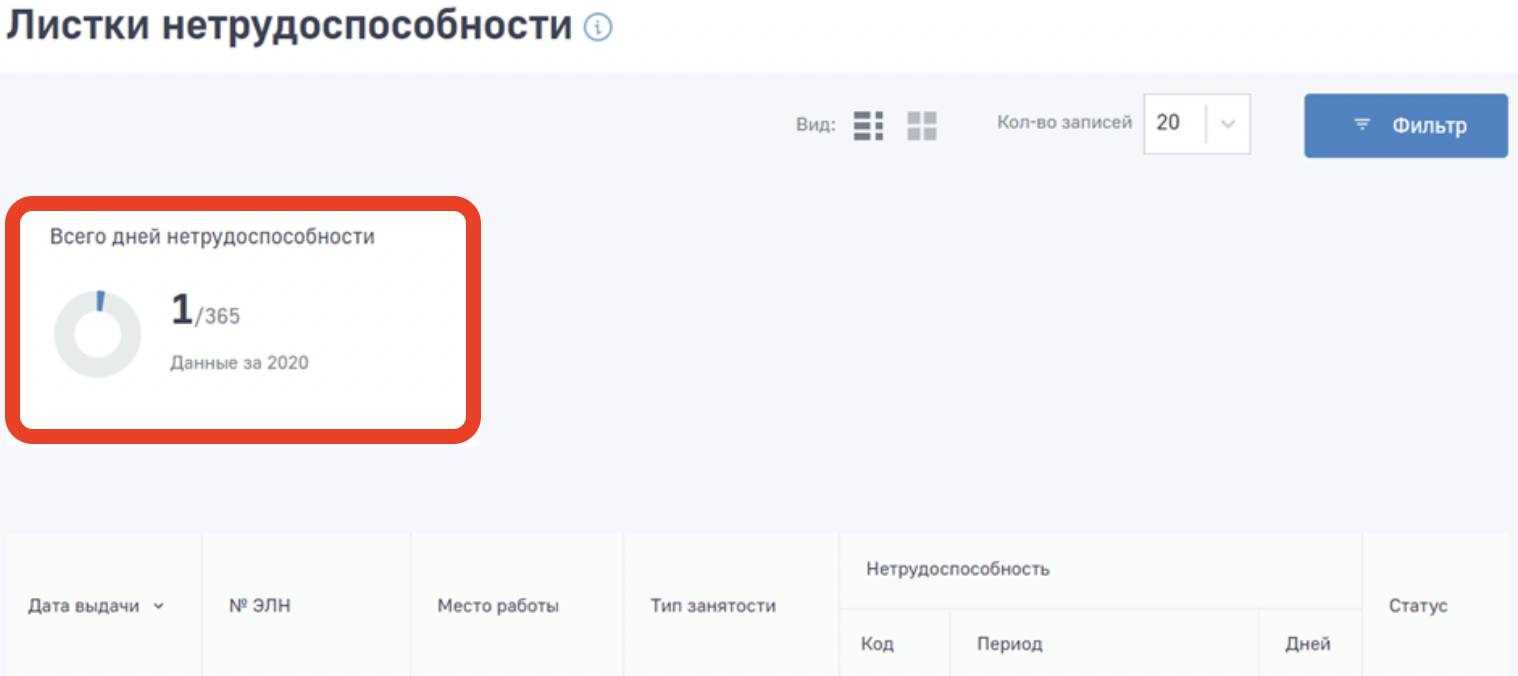 Это обозначение не касается конкретного больничного листа и его статуса, это своеобразный календарь нетрудоспособности пользователя портала в конкретном году. То есть, говоря проще, что означает значок календарь по больничному на Госуслугах, — сколько дней человек болел в конкретном году.