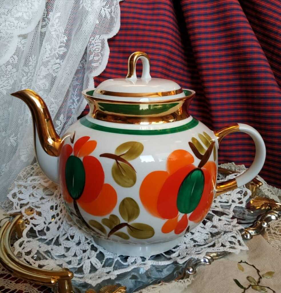 Фарфоровые чайники СССР – невероятные атрибуты того времени, так как с их помощи многие люди жившие при советском союзе могли принимать гостей показывая свой достаток и сделав приём невероятным. Как понимаете, такие чайники в повседневной жизни использовались редко, особенно если в семье имелись дети. Это обусловлено тем, что такой материал, как фарфор не смотря на советское качество достаточно хрупкий материал.